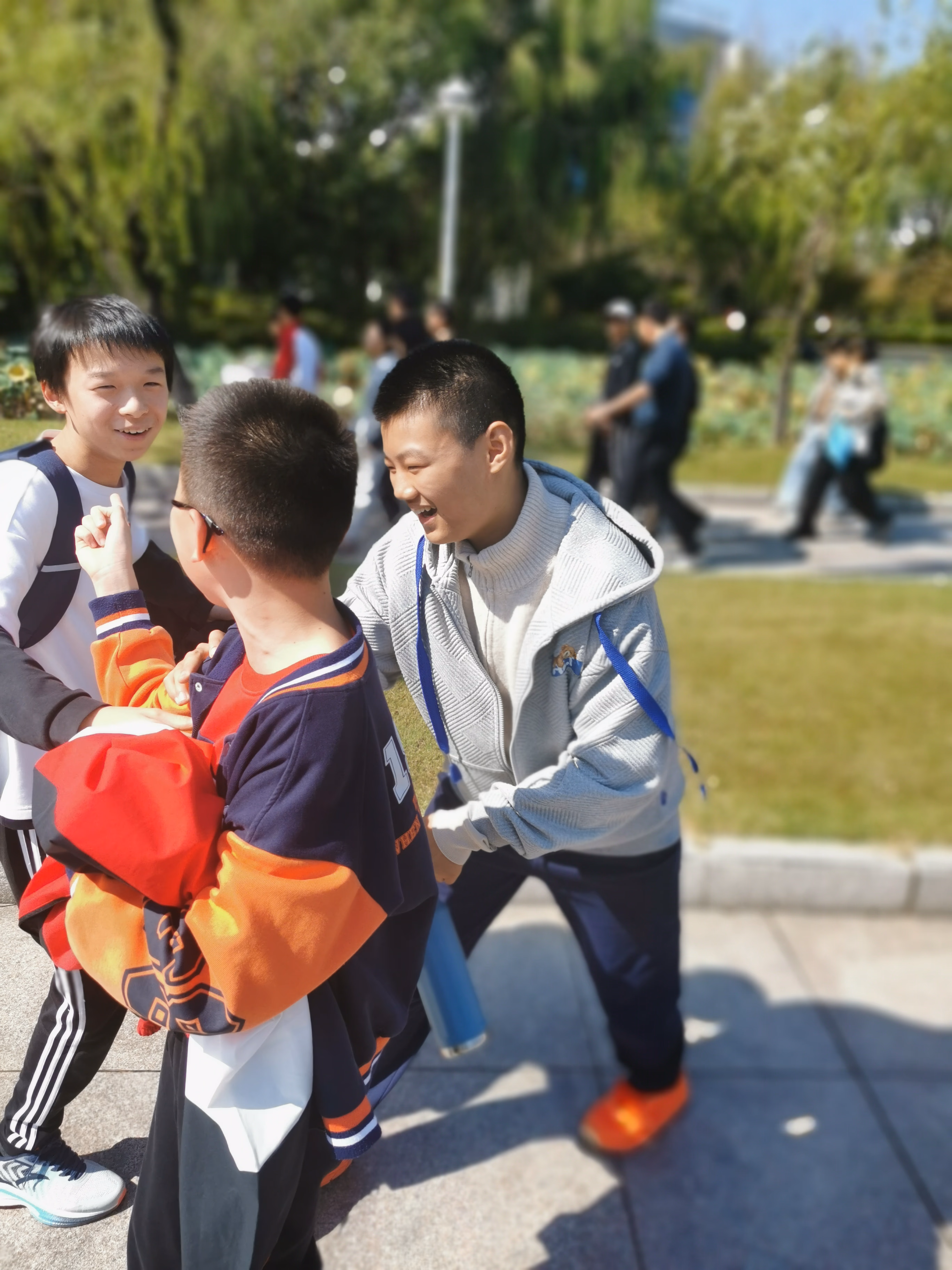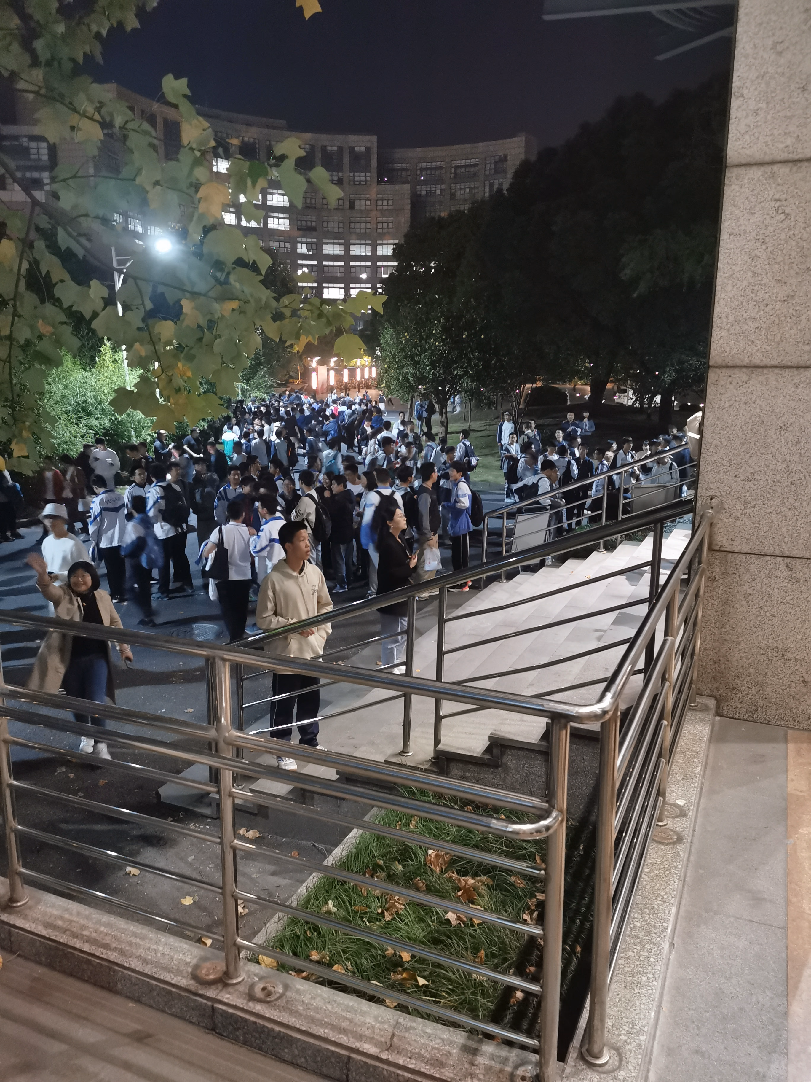 遇到了 ZROI 集训同学了。可以看到左图背对着镜头的 fuqingchen 大佬非常谦虚,但这无法掩盖他炸鱼的事实: